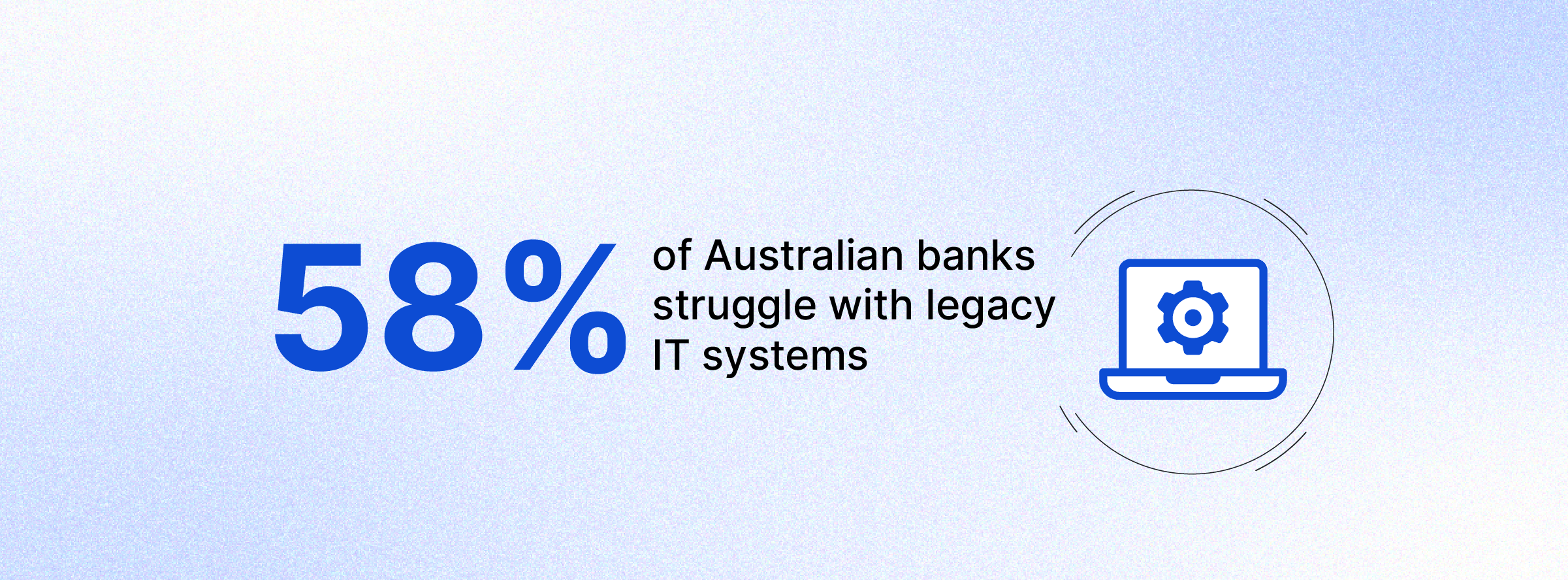 According to the Global Banking Benchmark Study 2022 by Publicis Sapient, 58 percent of Australian banks report struggling with legacy IT systems. Expensive to maintain and complicated to upgrade, this old tech is expensive to maintain and a bear to upgrade, but it also limits banks' ability to improve customer experiences and add new digital tools. Plus, more digital usage is putting extra strain on these old systems, making modernisation even harder.