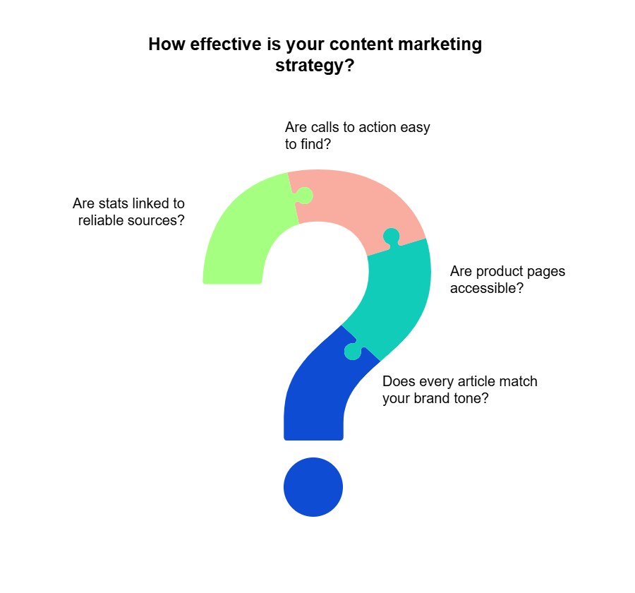 Measurement starts with clarity. Set clear KPIs for quality, such as fewer broken links, improved readability scores, consistent brand voice, and higher organic rankings. Don’t measure for the sake of it; pick content goals and metrics tied directly to business outcomes and user experience.