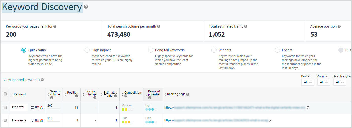 Use a search engine marketing tool. While you can brainstorm keywords using Google, you’ll have the most success discovering the best keywords with a search engine marketing tool, like Siteimprove Keyword Discovery, that can show you key data like search volume, competitiveness, and estimated cost per click. Not only will this help with budget planning for your paid ads, but it’ll help you discover search you might not have considered — meaning your organic content can fill that gap.
