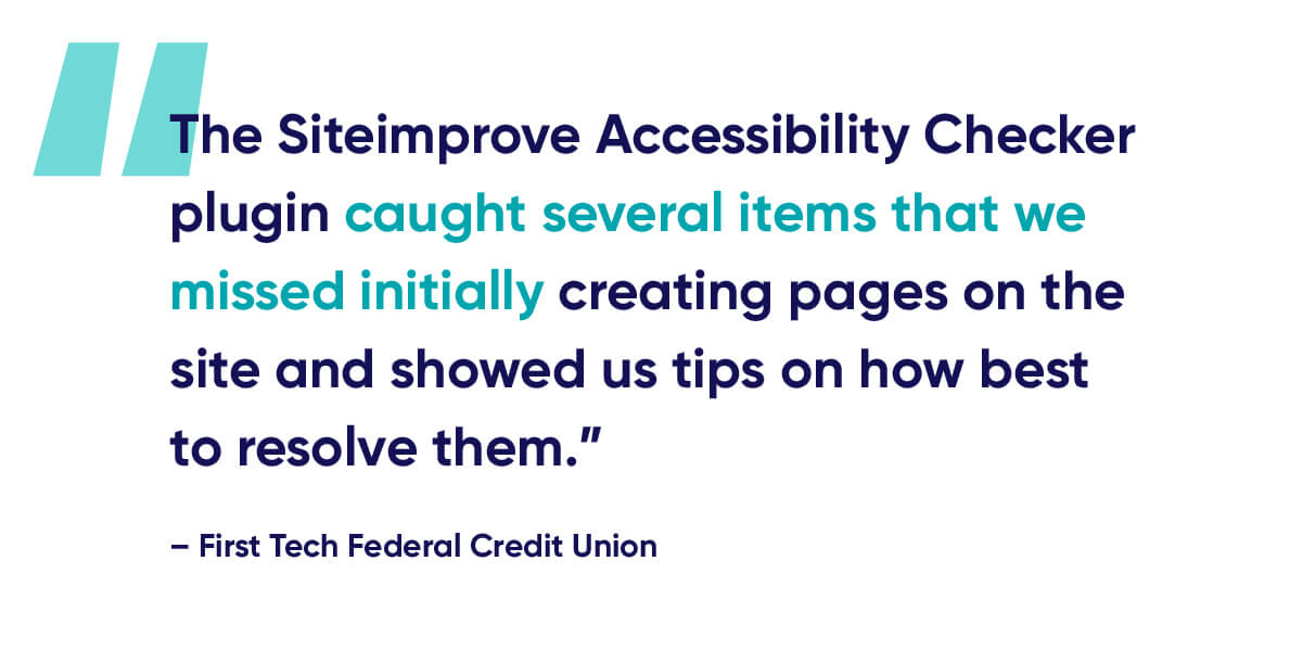 One of Siteimprove’s customers, First Tech Federal Credit Union, explained how incorporating automated accessibility testing into their development process enabled them to catch accessibility issues before their redesigned site launched.