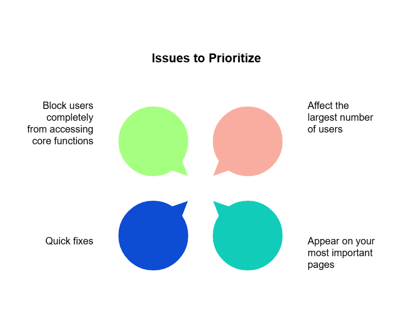 Document everything. Track what you find, what you fix, and what you decide to fix later. This documentation proves you're making a good-faith effort toward accessibility compliance, which matters if you ever face legal questions.