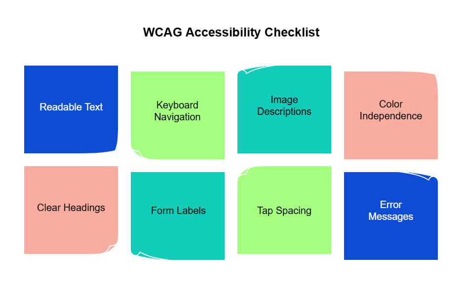 Your website should be usable by people with different needs. That means it must follow certain web accessibility standards, such as clear text and buttons, support for screen readers, keyboard navigation, and forms that work for everyone. (We’ll get to this in a moment.)