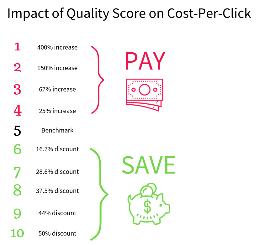 An in-depth audit of thousands of PPC accounts has shown that a Quality Score of 1 means an advertiser can end up paying 400% more for a click, while a score of 10 means advertisers can see up to a 50% discount.