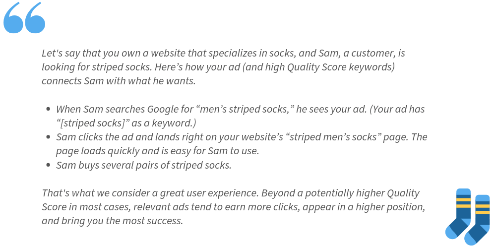 - Ad relevance: Does the ad make sense to appear when someone searches for a particular keyword?