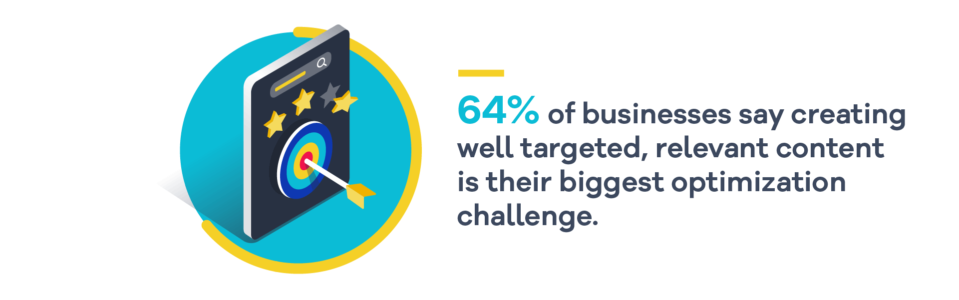 A recent report by Siteimprove and IDG found that 64% of businesses say creating well targeted, relevant content is their biggest optimization challenge.