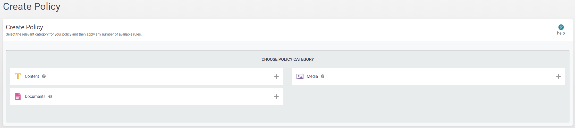 1. To get started, you can either select a pre-built policy from the Policy Library or create your own. Policies are split into three categories: