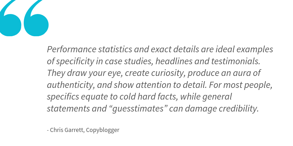 Specific numbers and dates are also a way to add specificity and credibility to your ads. Whenever possible, include specific numbers about how many businesses you’ve helped, the amount of time or money they’ve saved, a discount that’s applicable for X number of days, etc. This will lend your ads credibility: