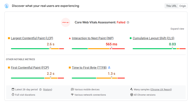 - Largest Contentful Paint: How fast your main content loads (page speed).