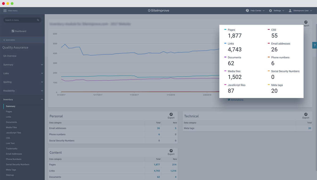 Step 1: Scope out your tasks with Content Inventory. It’s impossible to improve your content if you don’t know what – and where – it is. Use Content Inventory to gain a bird’s eye view of every page, link, and multimedia file on your website. From here, you can start prioritizing pages to fix based on popularity.