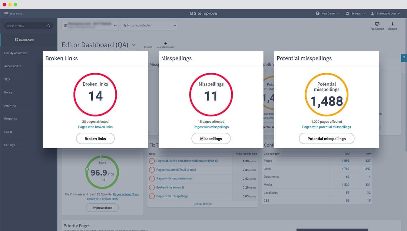 - Check your web page content is high-quality and error-free with Siteimprove Quality Assurance