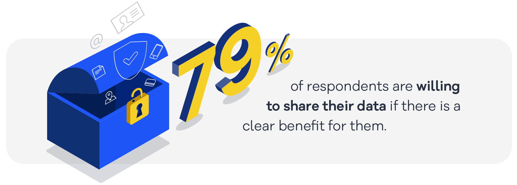 A global survey by Deloitte and SSI found that 79% of respondents are willing to share their data if there is a clear benefit for them. The study’s authors go on to say, “This means that companies should consider thinking about giving consumers a return on data. Whether it is something that entertains, informs, or rewards the consumer, companies should understand that many consumers may provide information in exchange for something that benefits them.”
