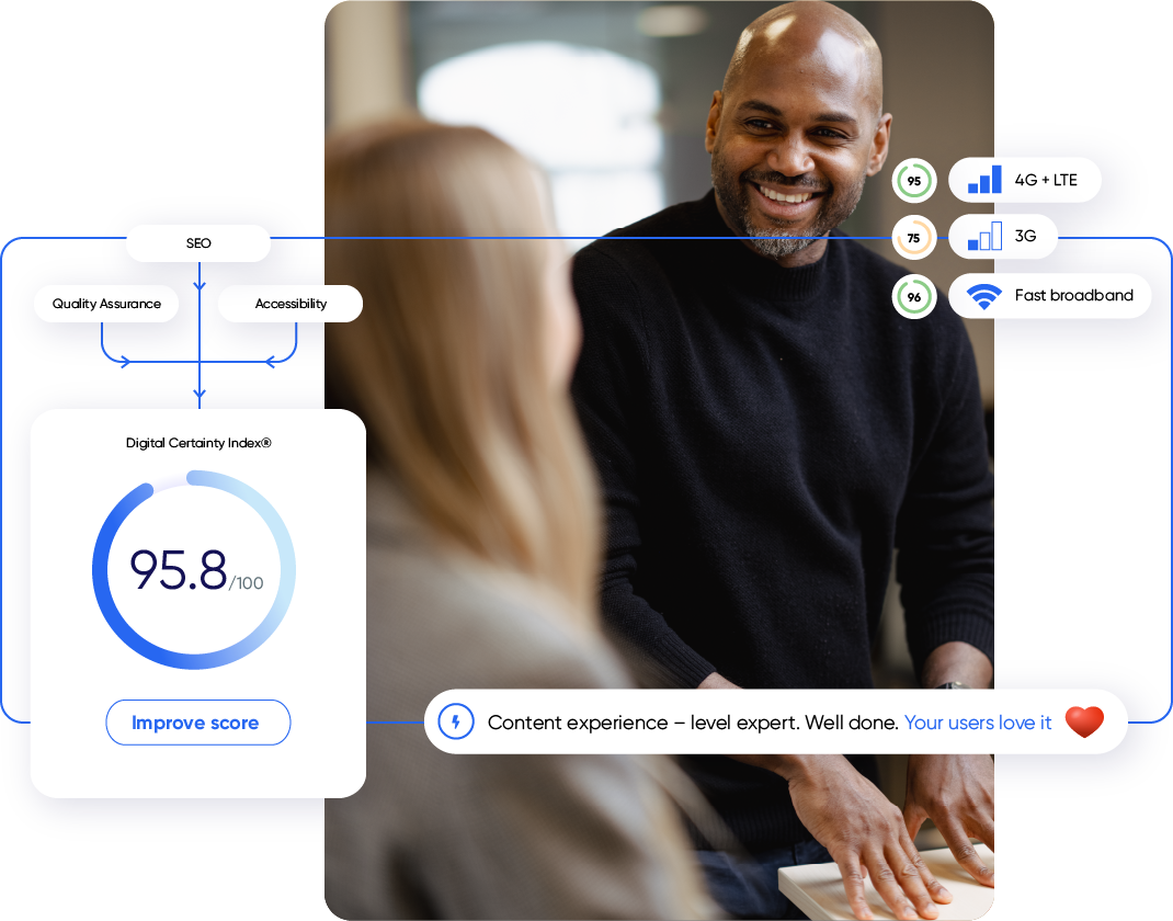 Mit Siteimprove können Teams wettbewerbsfähige, hochwertige Kundenerlebnisse schaffen, die sämtliche Erwartungen übertreffen – auf allen Geräten, über alle Kanäle und für alle Zielgruppen.