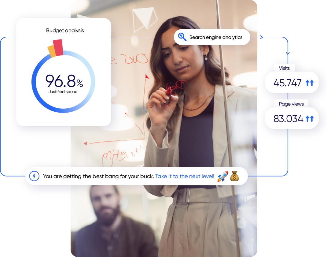 Unsere patentierte Scoring-Methode hilft Ihren Teams, die Wirksamkeit ihrer SEO-Aktivitäten zu beurteilen. Außerdem messen wir fortlaufend Ihren ROI sowie die Fortschritte im Hinblick auf Ihre KPIs - damit der Nutzen Ihrer Arbeit sichtbar wird.