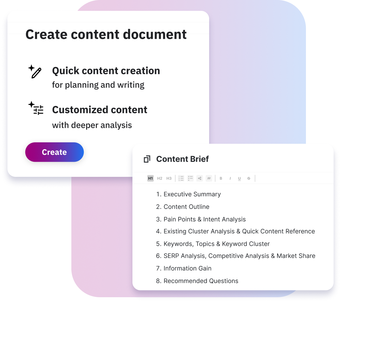 Turn your content creators into SEO powerhouses with our SEO Intelligence Suite. Our platform provides real-time, data-driven feedback directly within the writing process, so your team can optimize every article for search performance before you ever hit "publish."