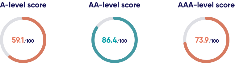 Your score is a measure of how well your page performs against the Siteimprove website accessibility checks, which are based on WCAG success criteria categorized by Level A, AA, or AAA conformance levels. The overall score is a combined total based on your score in each conformance level.