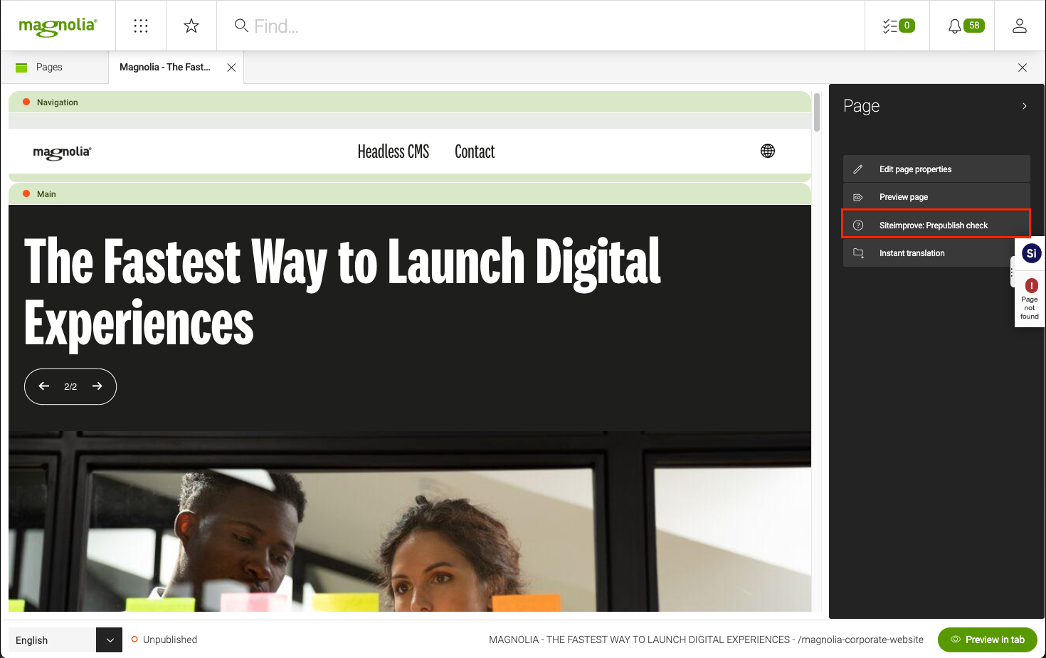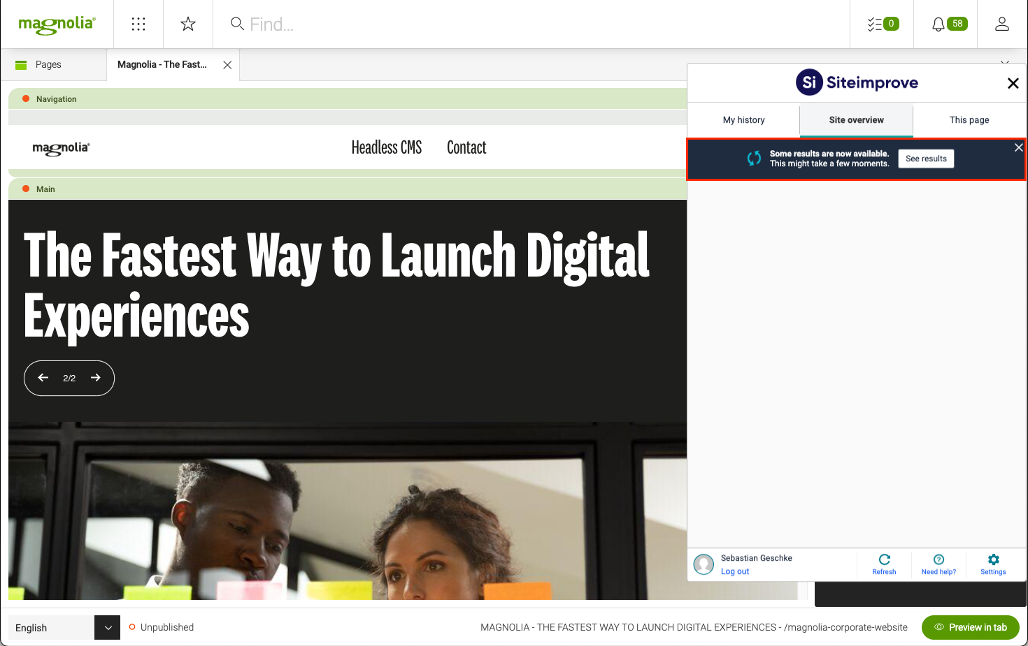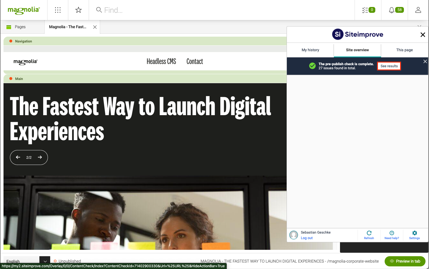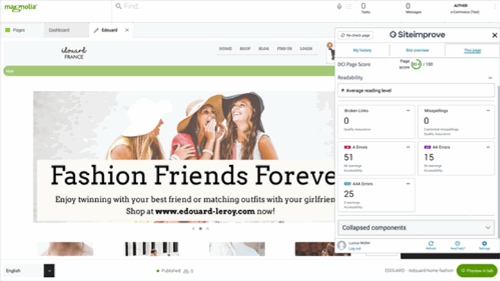 The idea behind the plugin is simple, yet effective. By leveraging the insights from Siteimprove’s Intelligence Platform directly in Magnolia, editors no longer have to publish a page and then have it checked separately, switching across different tools. This streamlines the workflow in an environment where brands increasingly have to consider multiple channels, devices and formats.
