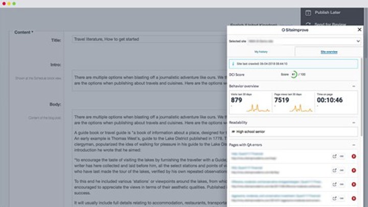 DownloadThe Siteimprove CMS plugin bridges the gap between the Percussion content management system (CMS) and the Siteimprove Intelligence Platform. Now you can scan your website for errors as soon as a page is published, allowing you to fix mistakes, optimize content, and manage your site more efficiently.