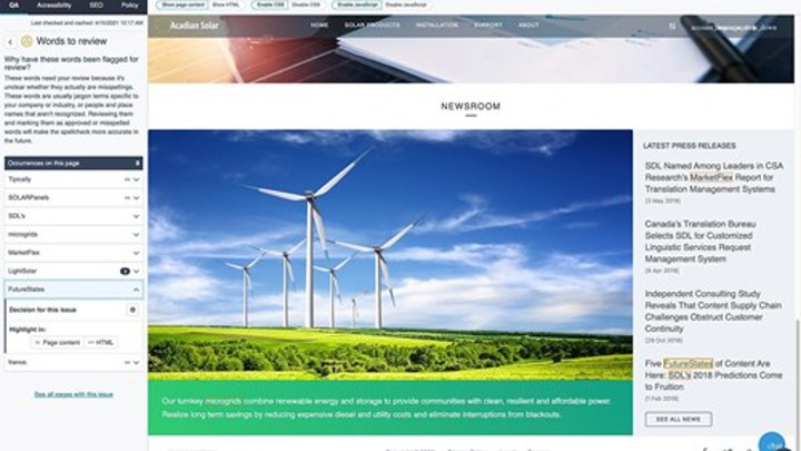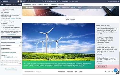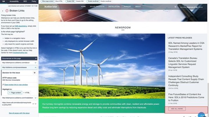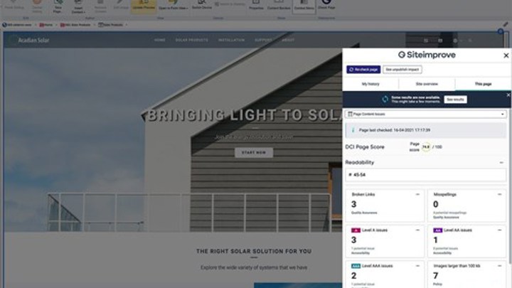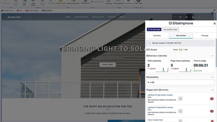 With the Siteimprove integration, you can see detected errors directly in Tridion Sites. Once errors are resolved, you can easily recrawl content to see how the page has improved, making it easy to foster a data-driven culture.